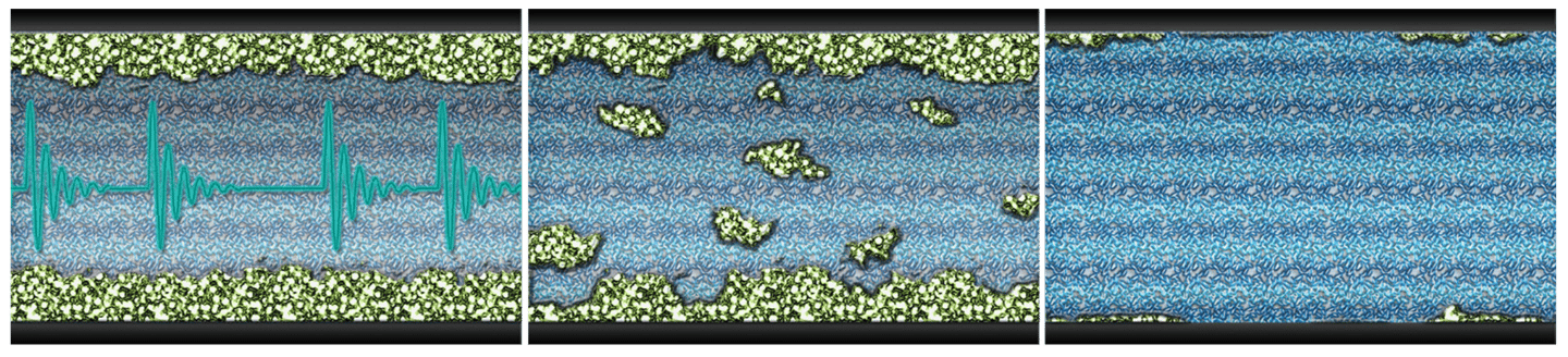 Bacteria and algae attach to pipe and equipment surfaces and form a layer known as biofilm. Over time, the Hydropath signal causes the release of biofilm by agitating the colonies. Released biofilm is flushed or filtered out of the system.