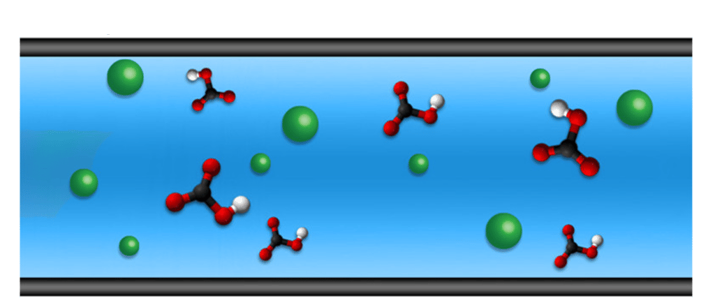 Minerals such as calcium carbonate, the mineral primarily responsible for limescale formation, are dissolved in the solution as TDS (total dissolved solids)